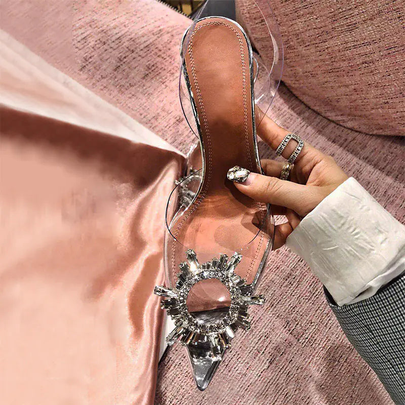 Step into the season with our stunning new 2024 Summer Collection of crystal-embellished flower PVC pointed sandals. Designed for the modern woman, these sandals are the perfect blend of fashion and comfort, making them an essential addition to your wardrobe.