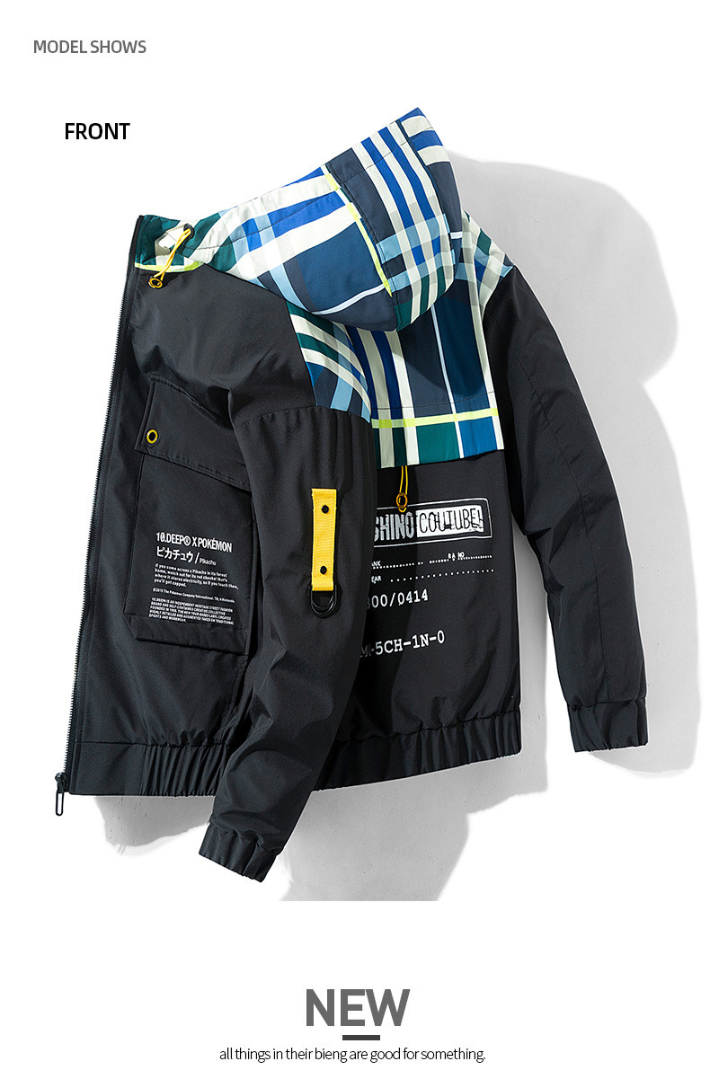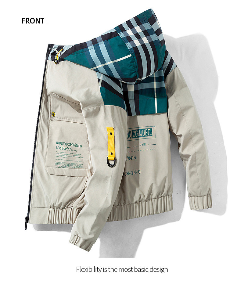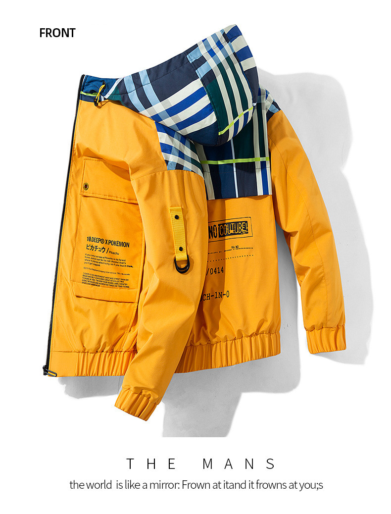Featuring a hood for added warmth and versatility, this jacket is perfect for any season. Its ordinary thickness makes it ideal for layering, while the vibrant color-blocking pattern allows you to express your unique style. Choose from a range of colors including Khaki, Yellow, Black, and Blue to match your mood and outfit.