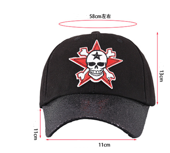 The cap features a round top and a curved brim, combining functionality with a trendy aesthetic. Whether you're rocking it at a Halloween party or incorporating it into your everyday look, its non-mainstream and hip hop vibe adds a touch of personality to any outfit.