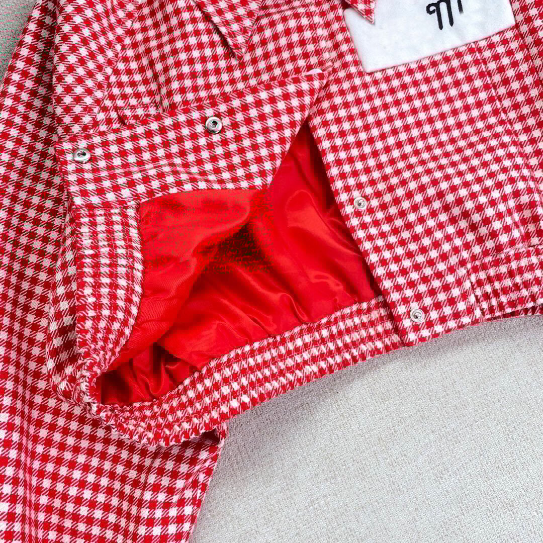 Available in a vibrant red, this cardigan comes in various sizes including S, M, L, and XL, so you can find the perfect fit for your body type. The conventional sleeves and chic check print design add a trendy flair, making this piece a standout choice for both casual outings and more formal events.