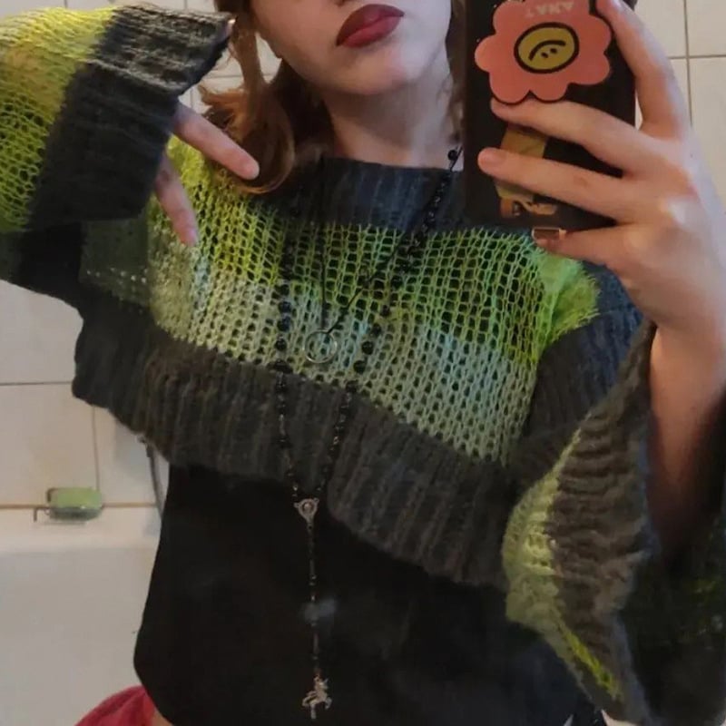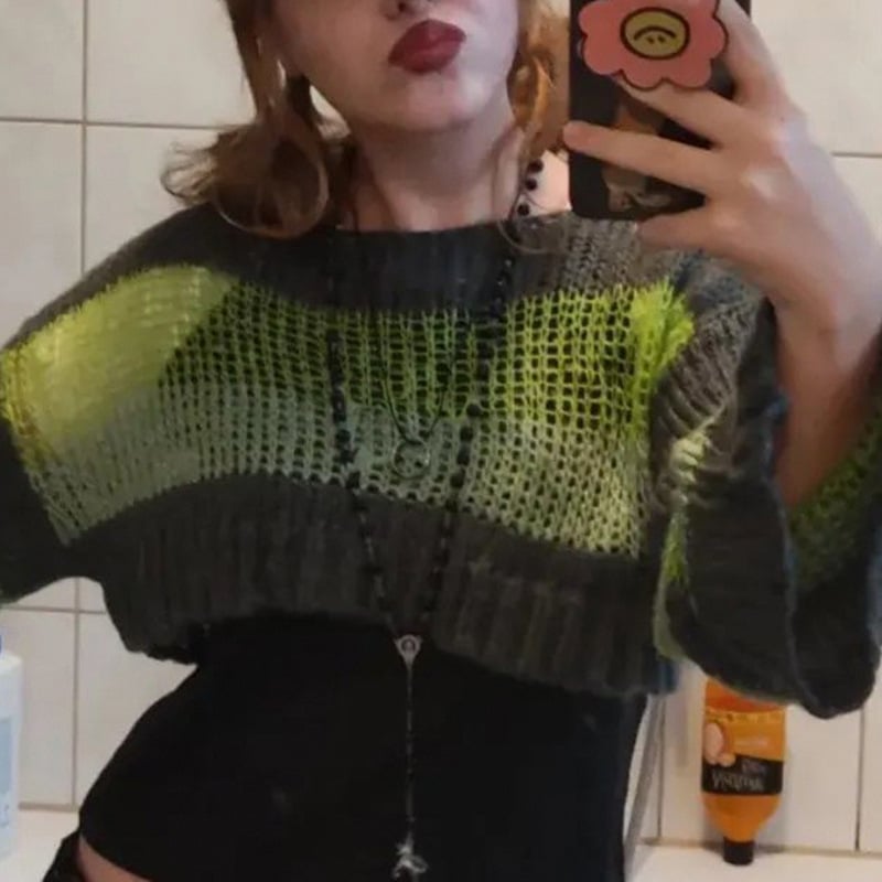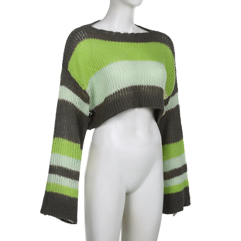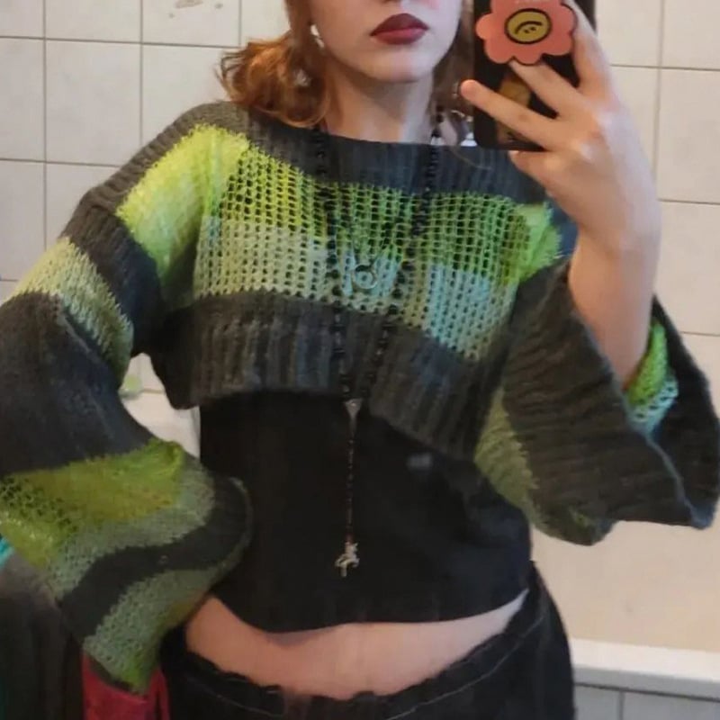 Whether you pair it with your favorite jeans or a stylish skirt, the Stripe Color Blocking Hollow Perspective Wool Short Blouse is versatile enough to suit any occasion. Take a closer look at the beauty of this blouse: