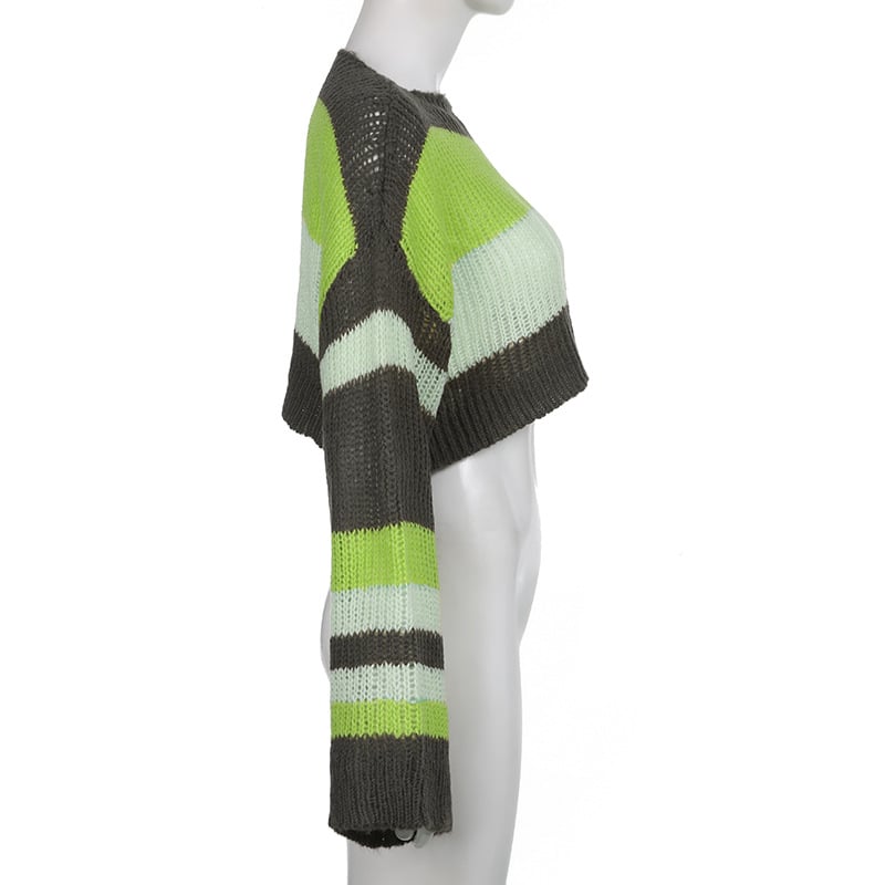 Elevate your wardrobe with our stunning Stripe Color Blocking Hollow Perspective Wool Short Blouse. Crafted from a premium blend of polyester and soft wool, this pullover is designed for those who appreciate both style and comfort. The unique color blocking pattern adds a trendy twist that makes this blouse a must-have for any fashion-forward individual.